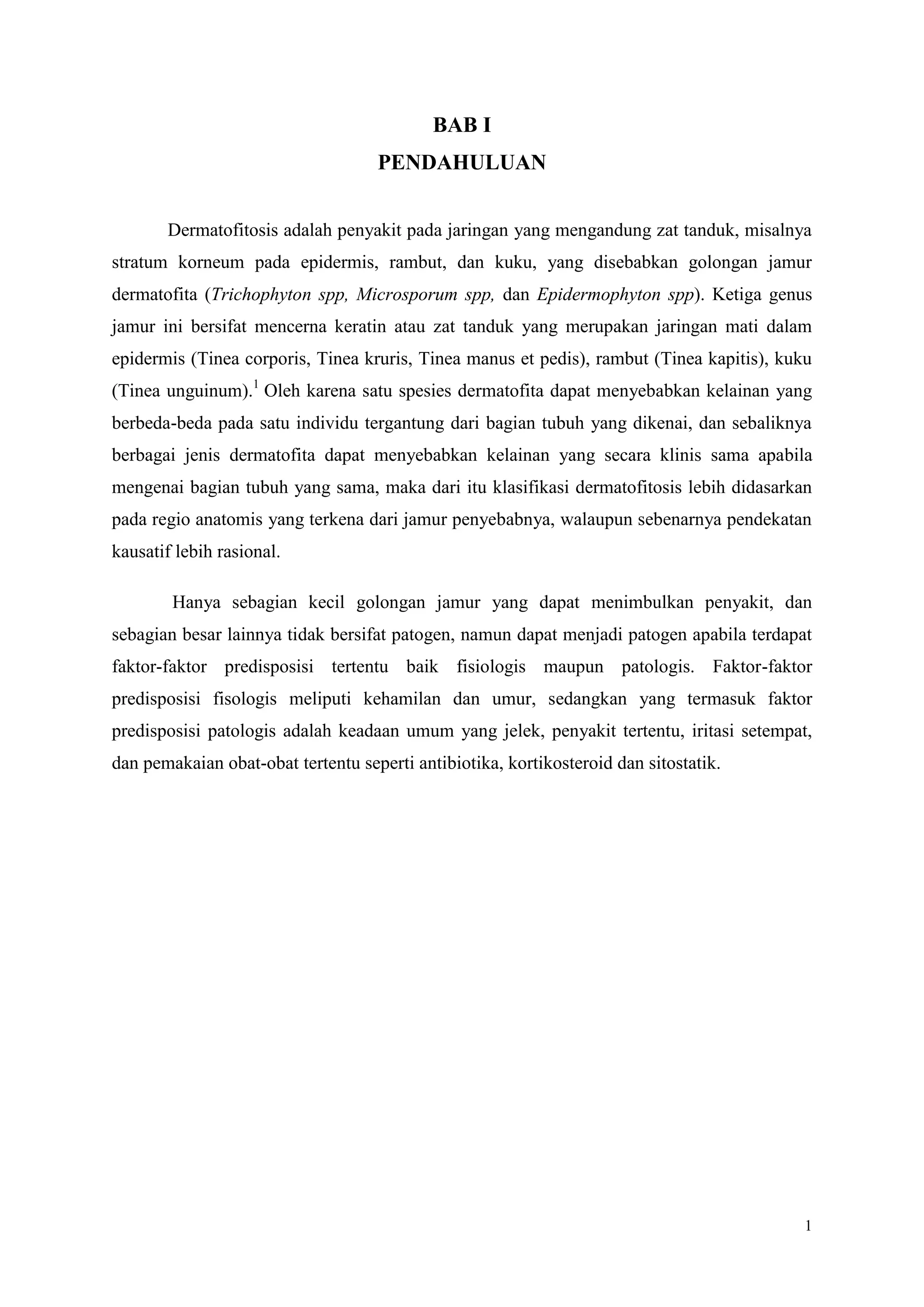 Dokumen ini membahas kasus seorang anak berusia 4 tahun, An. B, yang menderita dermatofitosis, khususnya tinea kruris, dengan infeksi sekunder ektima. Pasien berasal dari keluarga yang terdiri dari lima orang dan mengalami gejala gatal di area bokong yang semakin meluas. Penatalaksanaan dilakukan dengan perawatan non-medikamentosa dan pemberian krim antifungal ketokonazol.