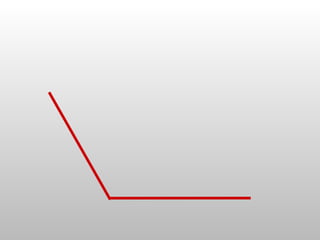 There are three types of angles: right angles which measure 90 degrees, obtuse angles which measure more than 90 degrees, and acute angles which measure less than 90 degrees. There are also three types of triangles classified by their sides: equilateral triangles have three equal sides and three equal 60 degree angles, isosceles triangles have two equal sides and two equal angles, and scalene triangles have no equal sides and no equal angles.