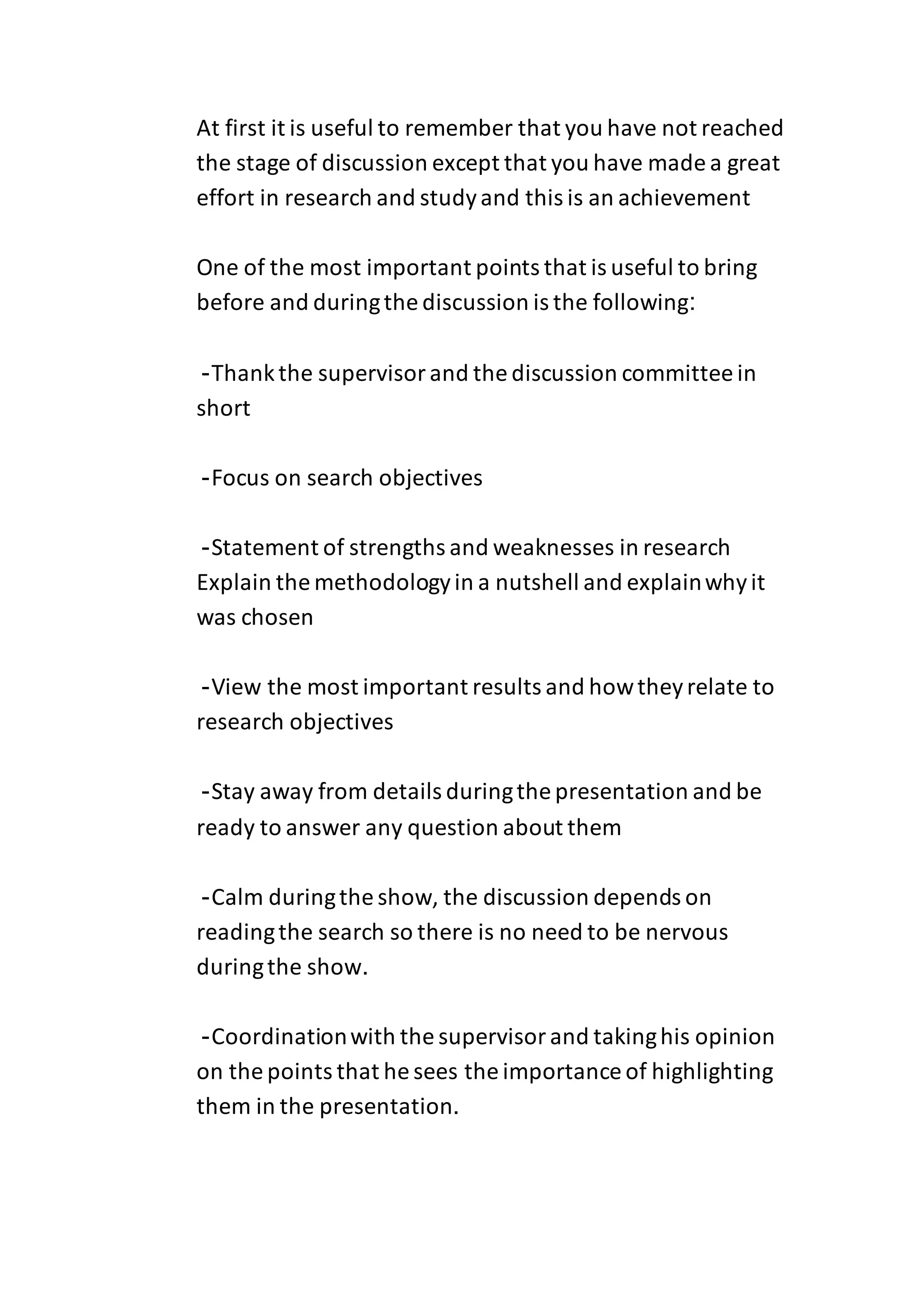 The document provides tips for successfully discussing a PhD thesis, emphasizing preparation and clear communication. Key points include expressing gratitude, focusing on research objectives, presenting methodology succinctly, and managing audience questions calmly. It advises against excessive detail in presentations, recommending concise slides and engaging openings to maintain attention.