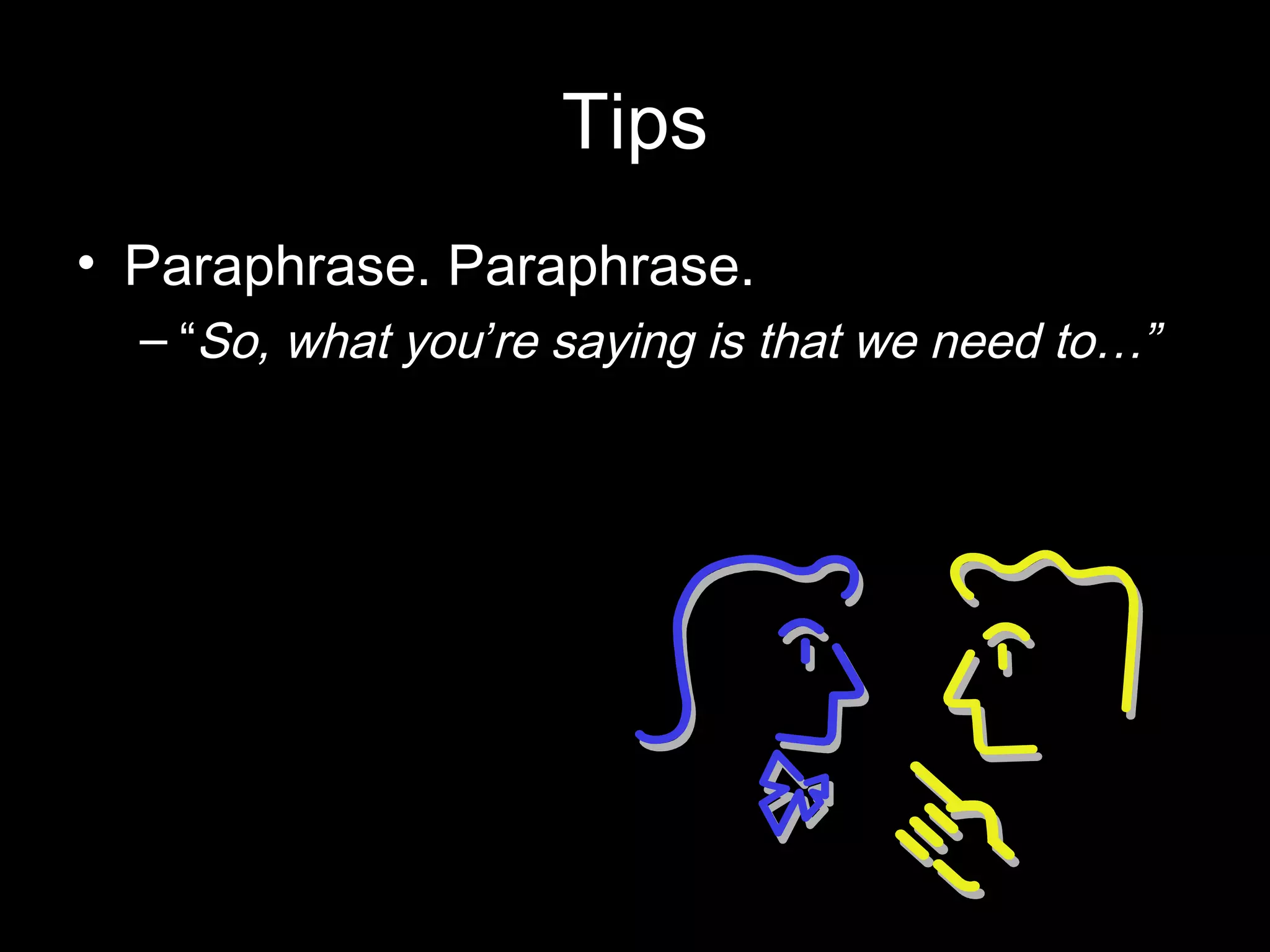 The document provides tips for facilitating discussions, including paraphrasing others' comments, checking for understanding, giving positive feedback, expanding on ideas, energizing the discussion, playing devil's advocate, relieving tension, consolidating ideas, changing activities, and summarizing the discussion.