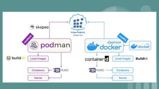 ● Podman : A daemonless container engine for developing, managing, and running OCI Containers on your Linux System,