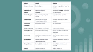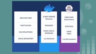 ● Docker : A comprehensive platform that enables developers to build, share, and run containers with an easy-to-use CLI