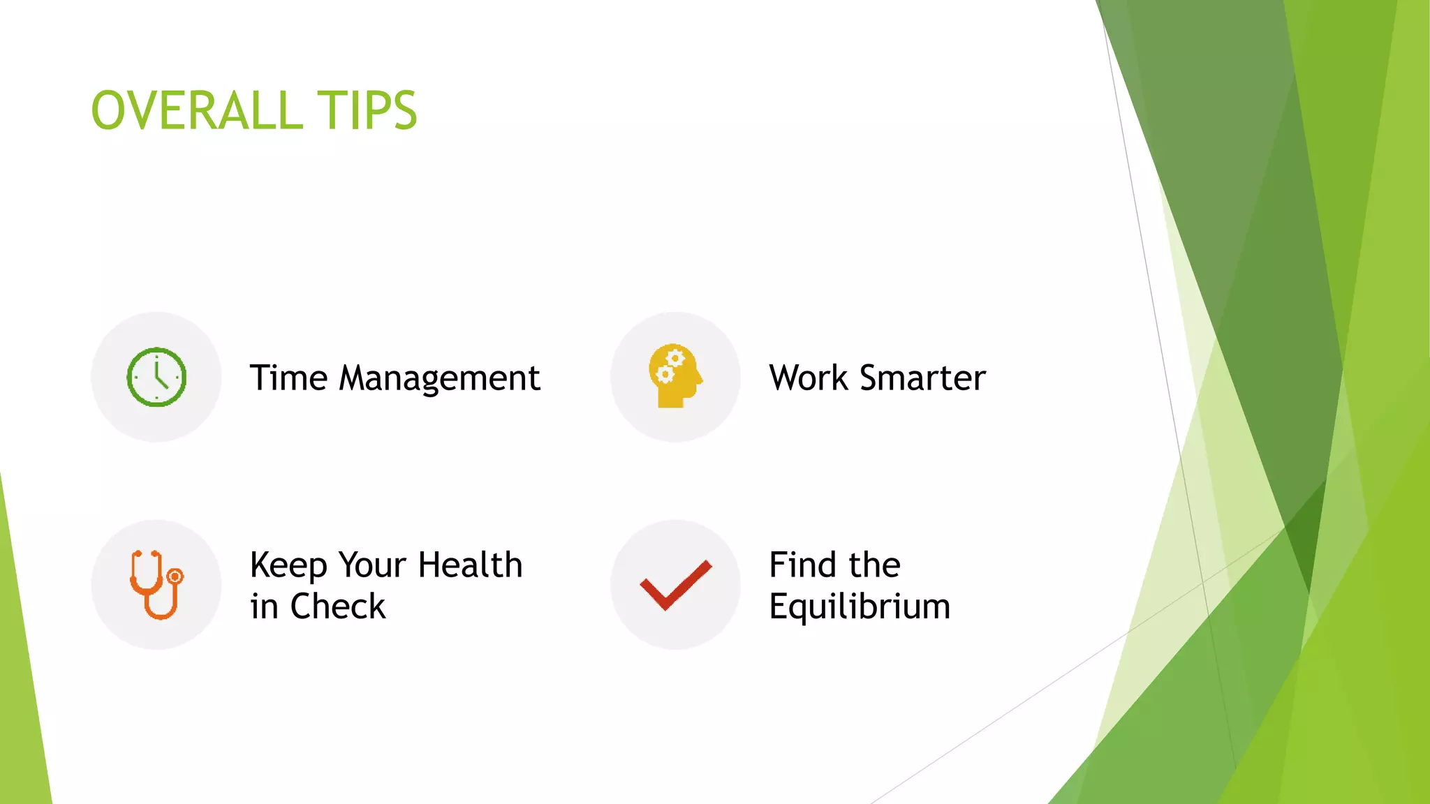 The document provides tips for student workers on effectively managing time, emphasizing the importance of prioritization and efficiency in their tasks. It highlights the necessity of maintaining both physical and mental health while balancing work and school, encouraging students to take breaks and focus on self-care. Ultimately, it stresses the importance of motivation and support from peers in navigating the challenges faced by student workers.