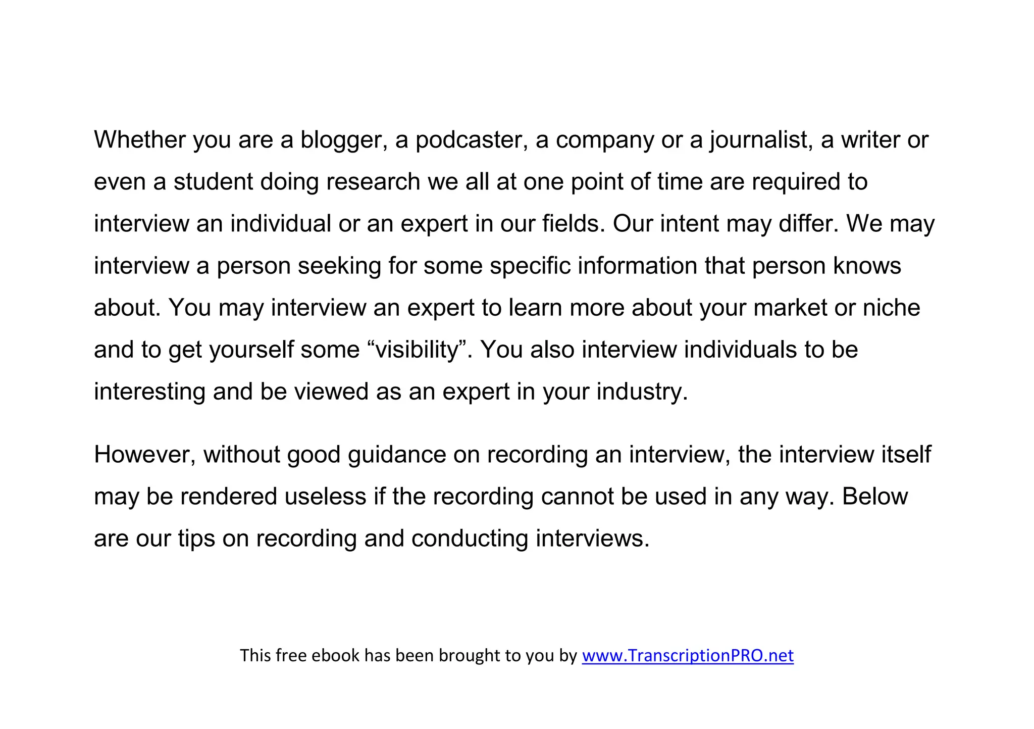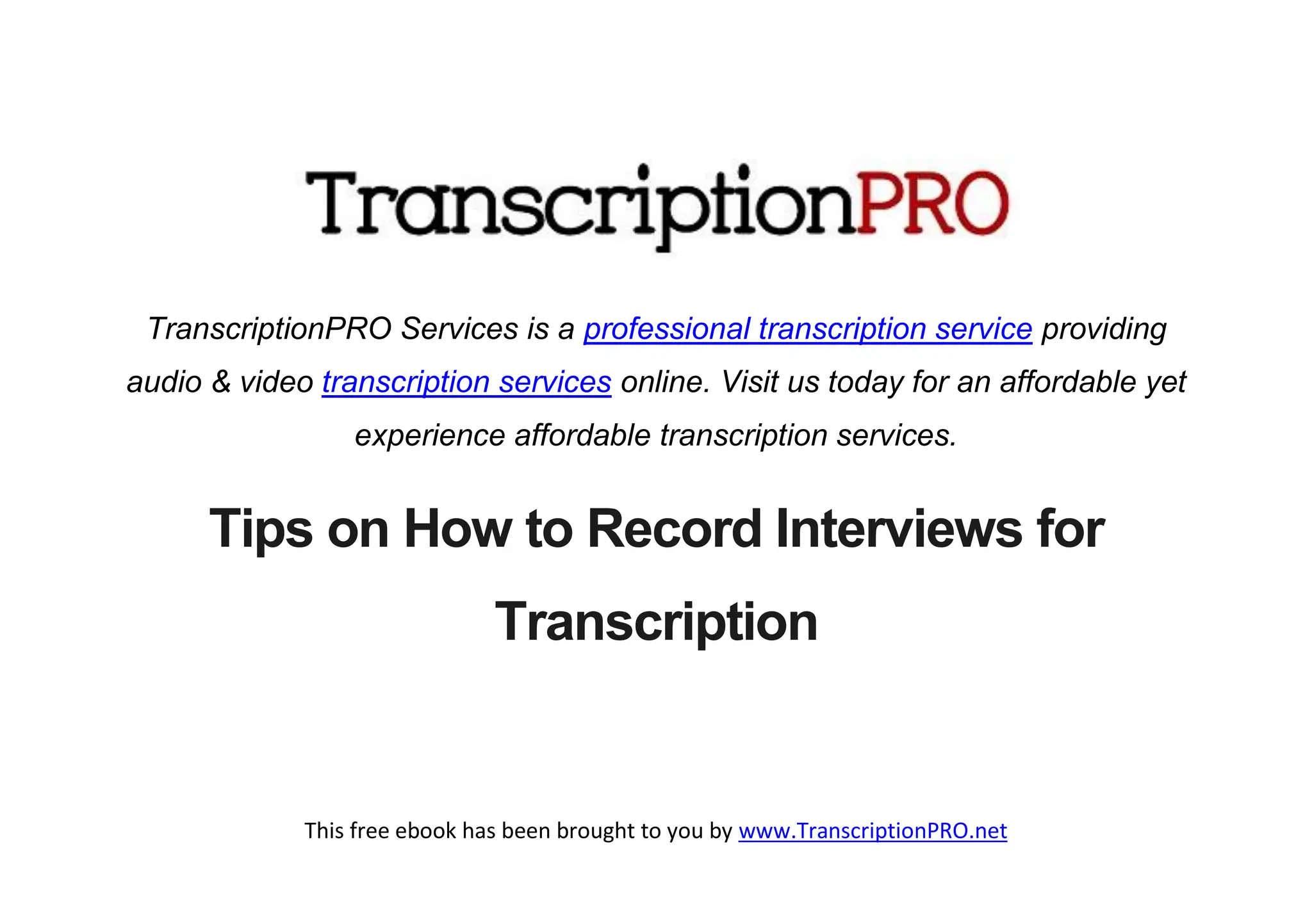 This free ebook has been brought to you by www.TranscriptionPRO.net