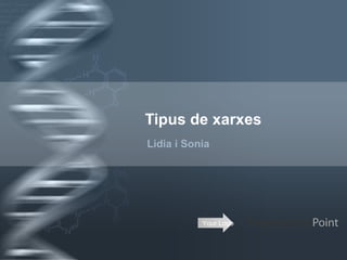 Tipus de xarxes-PAN: connectar dispositius a un ordinador via Bluetooh. -LAN: xarxa d’àrea local. -CAN: abraça diversos edificis d’una mateixa universitat. -MAN: xarxa d’àrea metropolitana. -WAN: connexió amb diversos edificis de localitats, països…