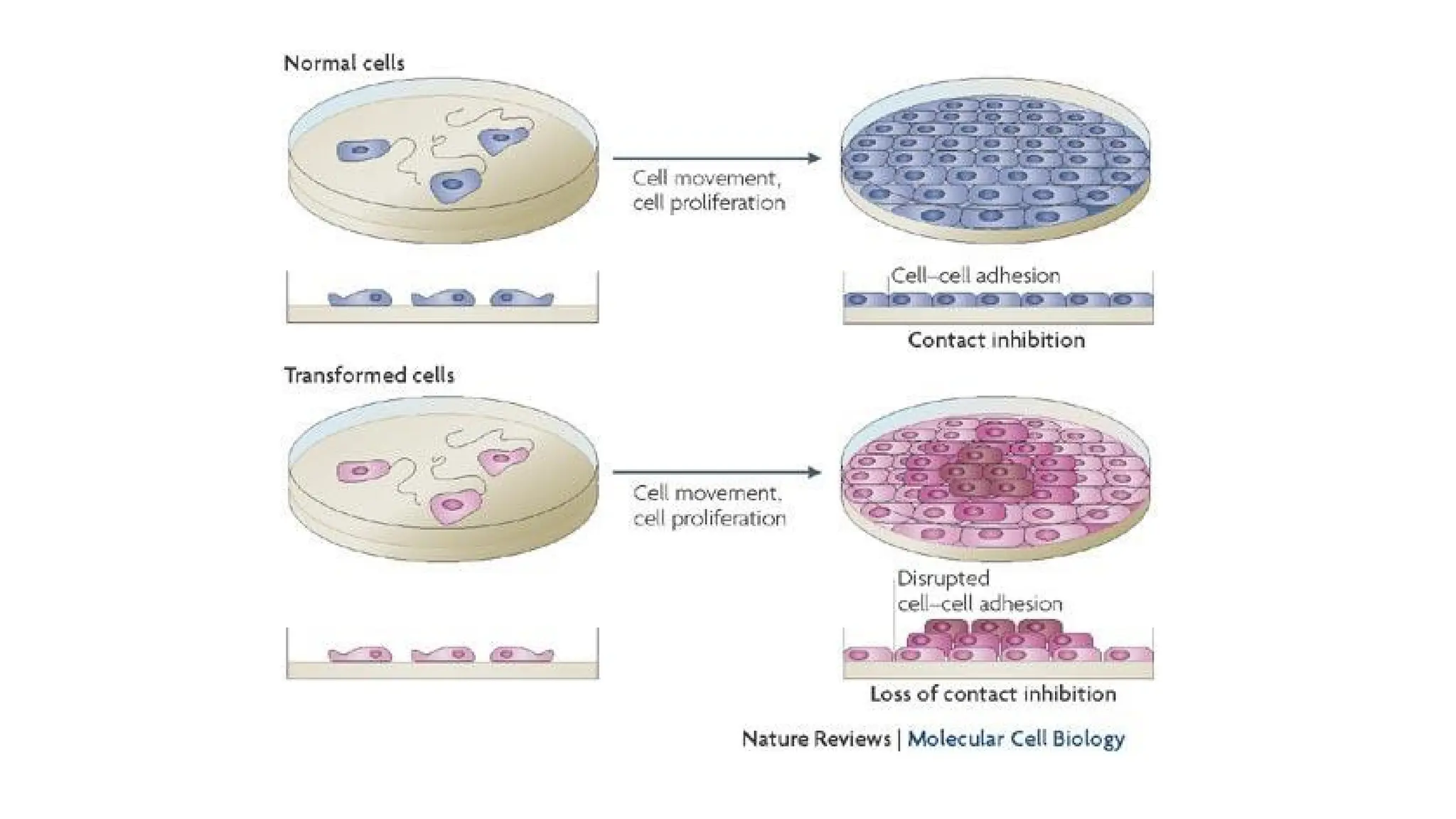 Loss of anchorage dependency and contact inhibition.