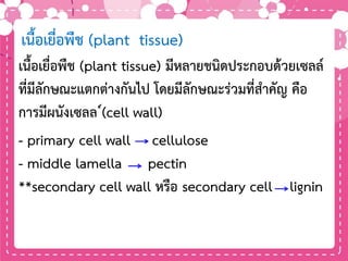 เนื้อเยื่อพืช(plant tissue) มีหลายชนิดประกอบด้วยเซลล์