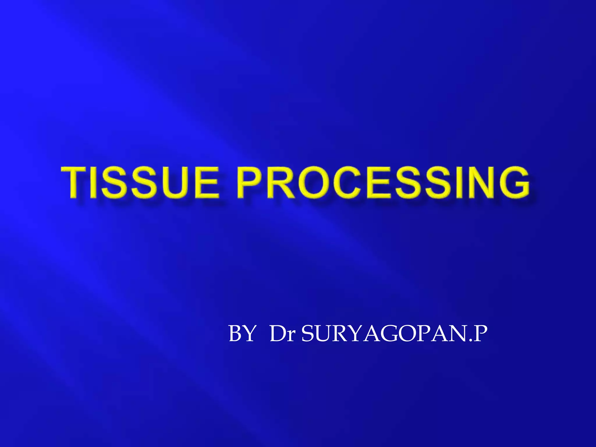 1. The document discusses the various steps involved in tissue processing for microscopic examination, which includes fixation, processing, embedding, sectioning and staining of tissues.
