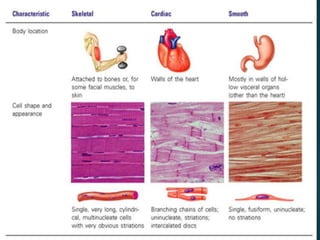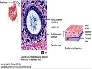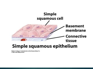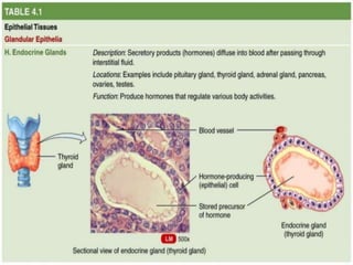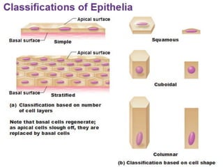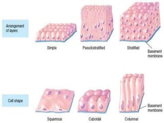 The document provides a comprehensive overview of epithelial tissue, connective tissue, muscular tissue, and nervous tissue. It describes the structure, function, and classification of various types of epithelial tissues, including simple and stratified layers, as well as glandular epithelium. Additionally, it covers different categories of connective tissues and their roles in the body, alongside details about muscular and nervous tissues.
