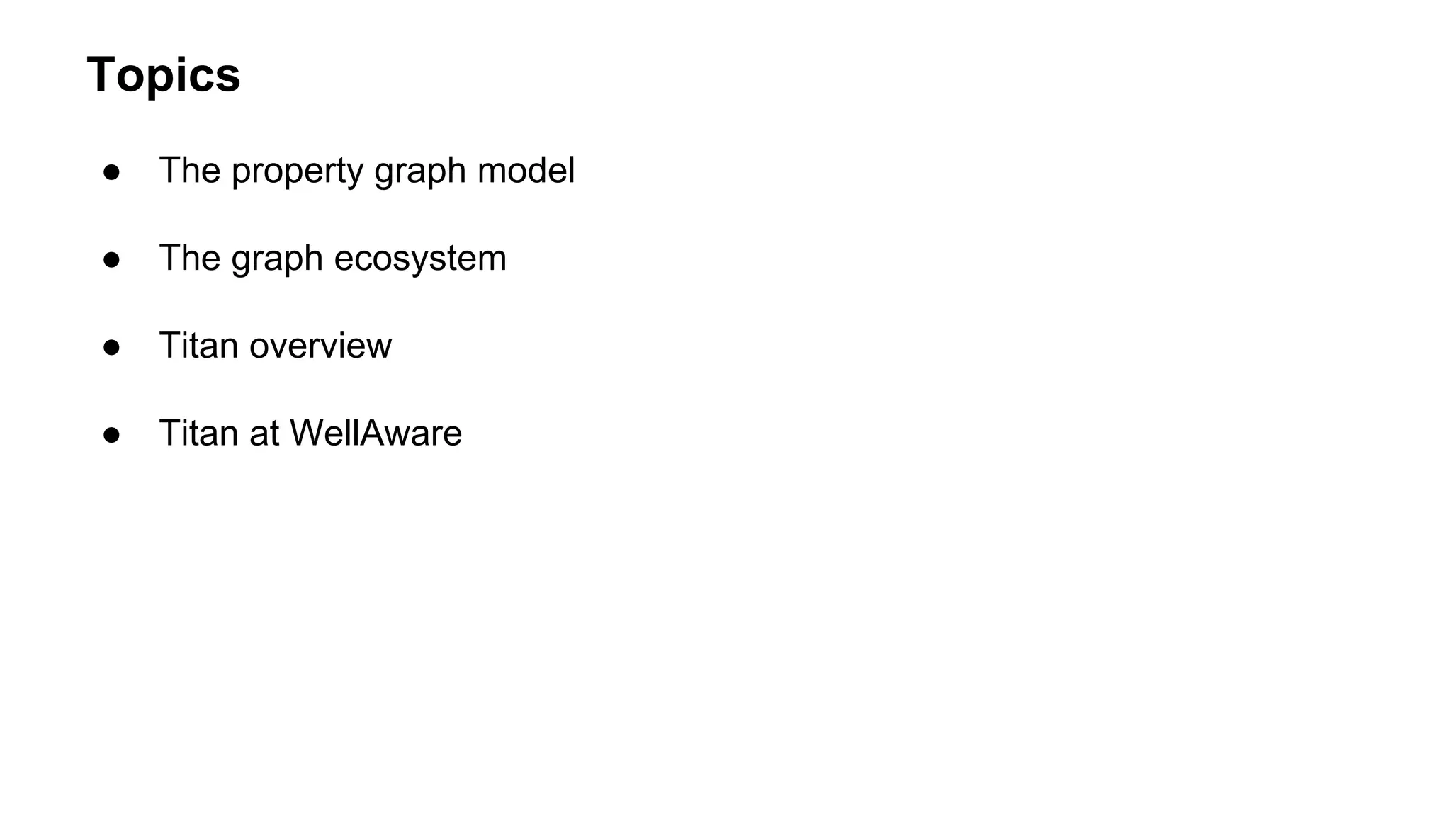 The document provides an overview of using the Titan graph database with Cassandra, detailing its property graph model and how to implement graph projects utilizing Apache TinkerPop. It highlights key graph operations, including adding vertices and edges, querying, and graph processing functionalities, along with insights on Titan's deployment and integration challenges within real-world applications. Additionally, it touches on the use cases for graph databases, Titan-specific features, and available resources for further learning.
