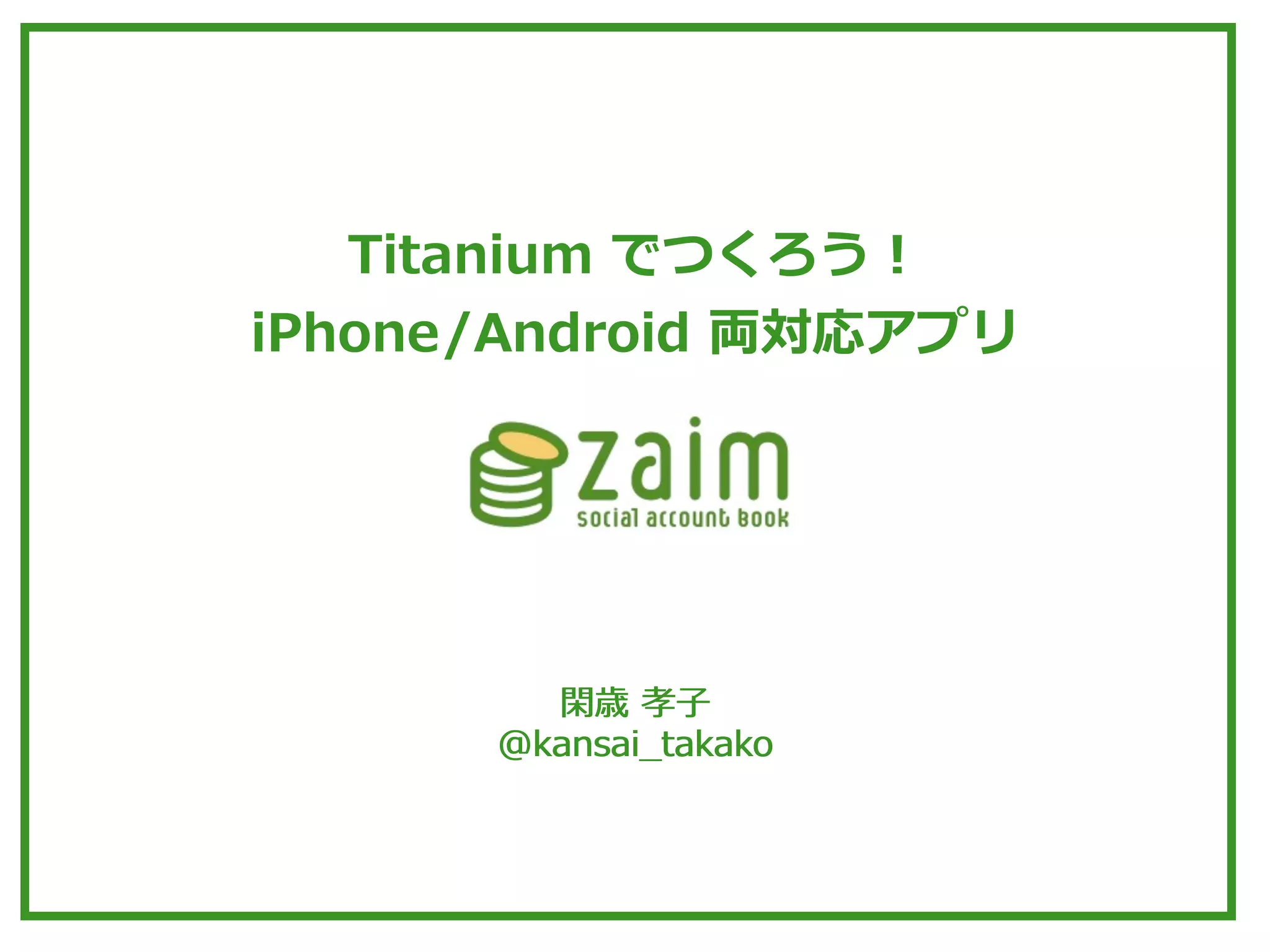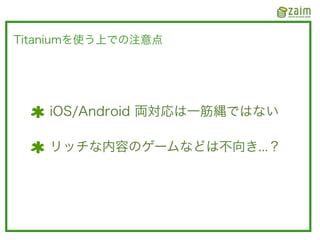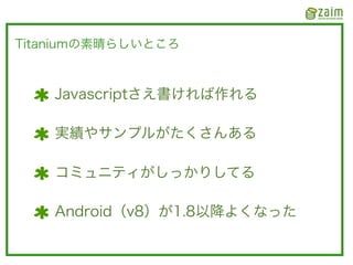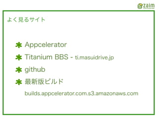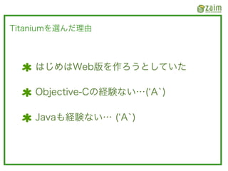 2012/02/14 に発表した Titanium Mobile を使って開発している Zaim で得たノウハウたちです。