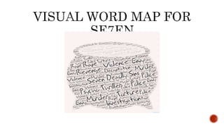 The title sequence of the film Se7en uses various techniques to set a mysterious and unsettling tone. The titles flash between each other unevenly written to emphasize the thriller genre. Actor names are presented in disjointed or distorted ways, such as Morgan Freeman's name appearing in a thunderstorm, to suggest darkness, tragedy, and an unstable mind. Images shown include hands implying grief or murder, old files symbolizing a drawn out investigation, and documents revealing truth - preparing the audience for a disturbing storyline involving serial killings tied to the seven deadly sins.