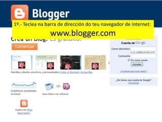 Segue as indicaciónsda páxinaEscribe o título que lle vas dar ao teu blog, no noso caso "O BLOG DE PROBA"O título aparecerá na cabeceira do teu blog