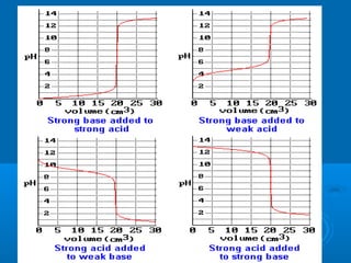 The document details the principles of titration, including types of titrations such as precipitation, acid-base, complexation, and redox reactions, emphasizing the importance of accurate measurements and standardization. It also discusses methods for determining the equivalence point, endpoint detection technologies, and the necessary properties for indicators and standards used in titrations. Additionally, it addresses potential errors in titration methods and best practices for using volumetric apparatus.