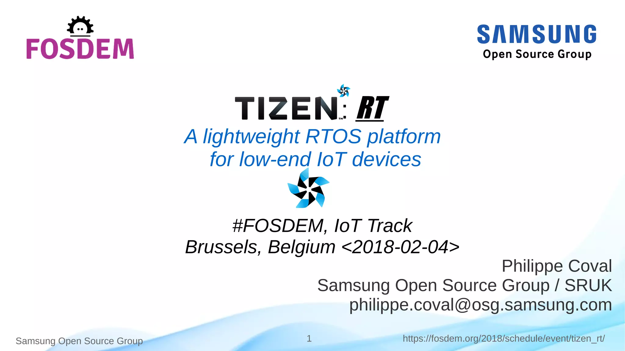 This document provides an overview and agenda for a presentation on Tizen RT, a lightweight real-time operating system (RTOS) platform for low-end IoT devices. The presentation will cover the technology and features of Tizen RT, how it differs from other RTOS options like NuttX and TinyAra, and how to build and run applications on Tizen RT using examples like building a simple "Hello World" app. It also lists several demos that will be shown, including connecting to WiFi, running MQTT subscriptions, and controlling GPIO pins.