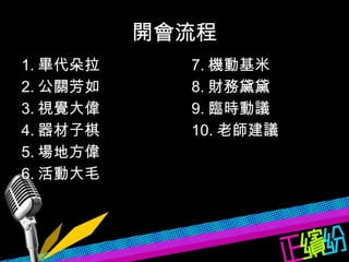 2. 舞台音響 3. 展場桌椅 4. 無線網路