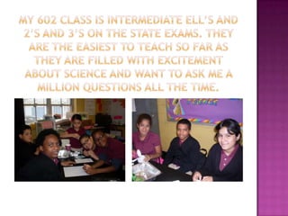 The document summarizes the educational journeys of several individuals. It discusses four sisters attending various universities, a teacher named Nancy who earned her science teaching certification and began her first role at a New York City school, and the long multi-leg commute this teacher endures each day to get to work.