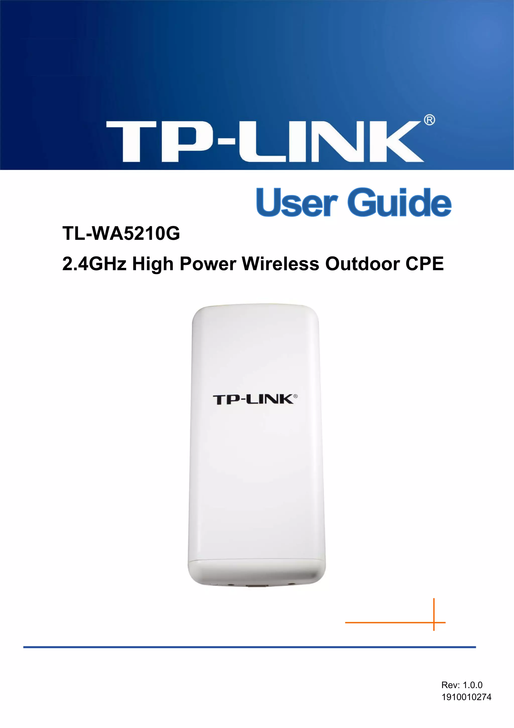 This document provides product specifications and compliance information for the TL-WA5210G 2.4GHz High Power Wireless Outdoor CPE device. It includes details on FCC compliance for radio frequency exposure, CE marking compliance, the device's technical characteristics, and contact information for TP-LINK TECHNOLOGIES CO., LTD. The document contains instructions on installing and setting up the device, its LED indicators, interfaces, system requirements and supported operation modes.