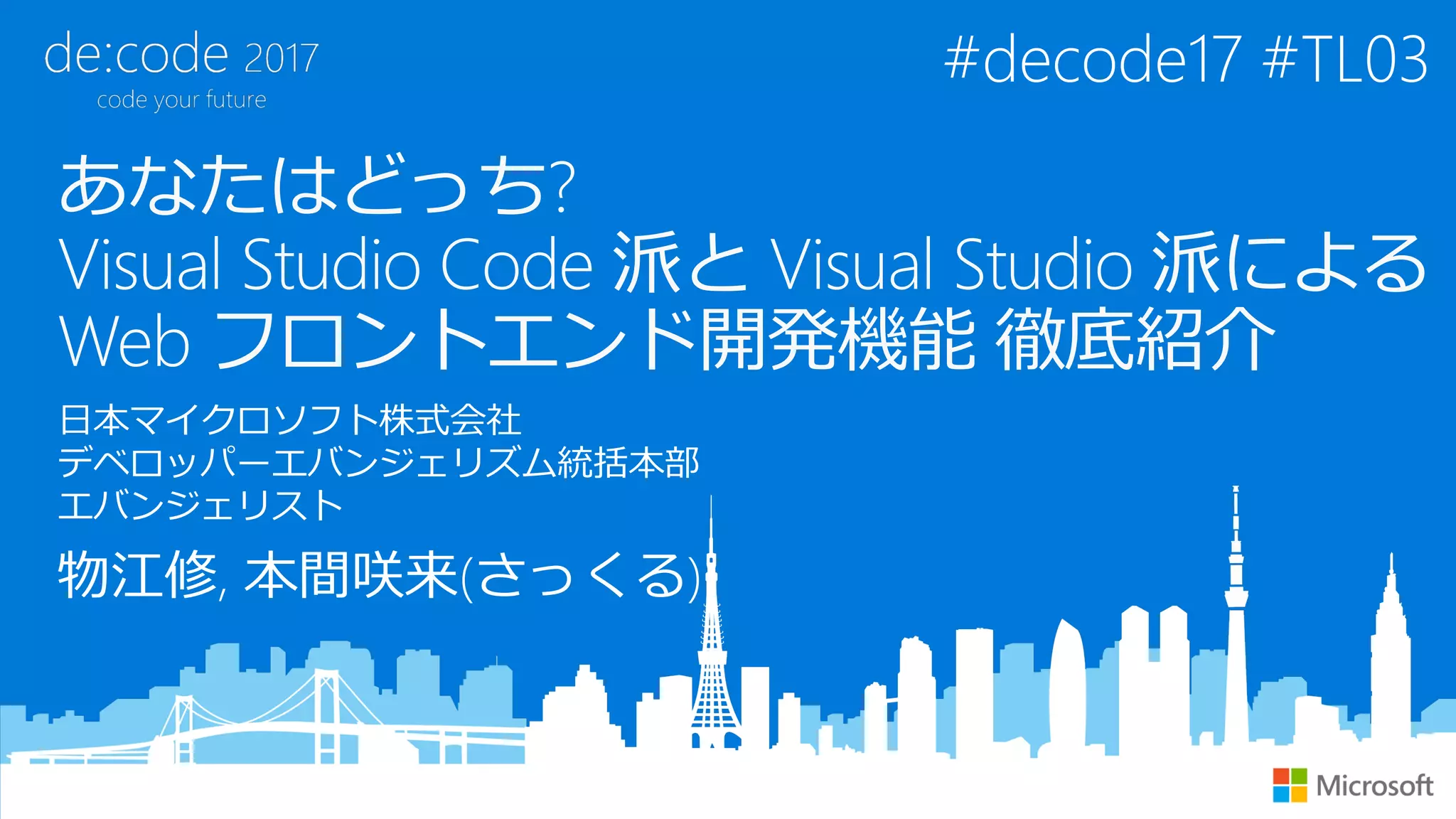 伝統的な Windows の開発ツールである Visual Studio と、Mac、Linux でも動作する Visual Studio Code。これらはそれぞれ拡張機能を追加することで最新の開発スタイルに対応することができます。このセッションでは、この 2 つの開発ツールについて、Web フロントエンド開発者向けの機能を、新機能、既存機能をふくめ、あますところなく使いこなせるよう徹底解説します。
