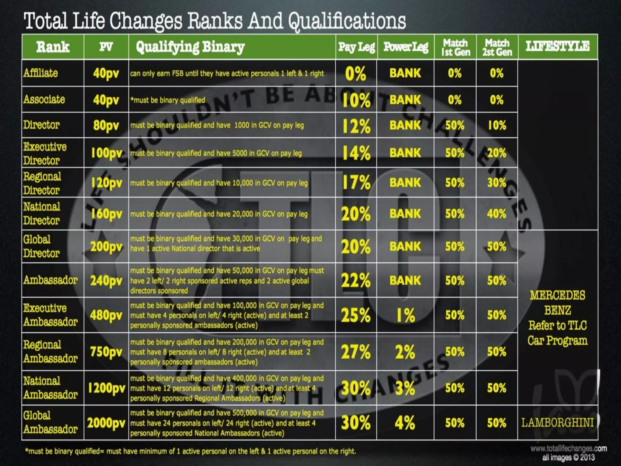 - Total Life Changes (TLC) is an international MLM company founded 13 years ago that sells health products like teas and supplements.
