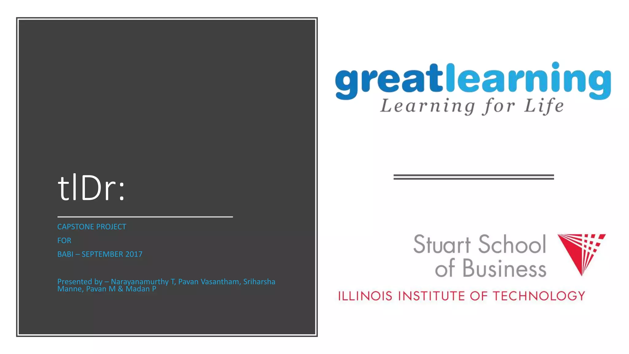1. The document summarizes a capstone project on automatic text summarization using both extractive and abstractive techniques.
