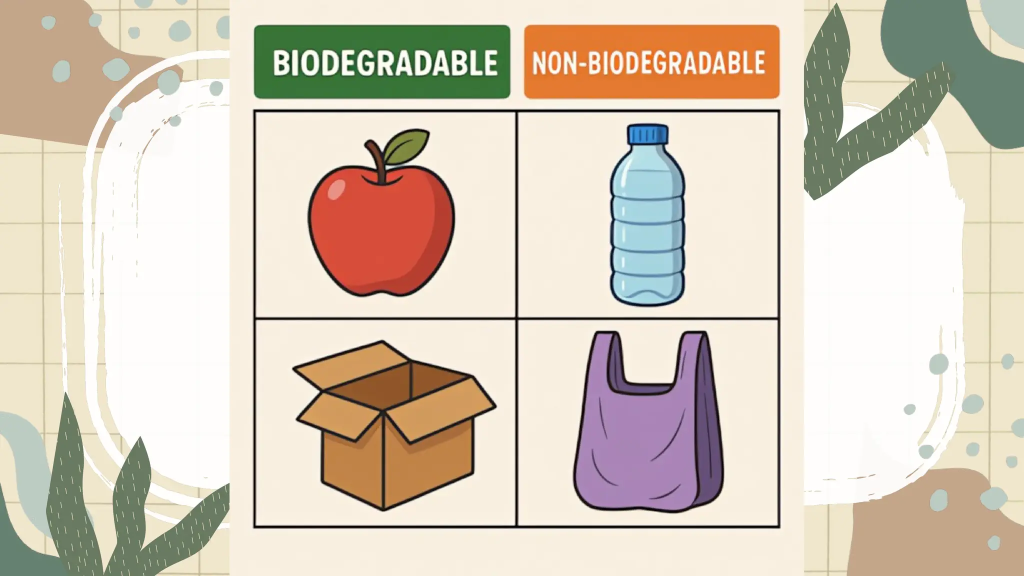 banana peel, twigs,