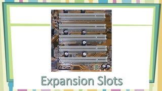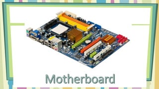 The document discusses key components of a computer, including the motherboard, CPU, primary storage (RAM and ROM), expansion slots, adapters, power supply, hard disk drives, and optical drives. Each component plays a crucial role in the functioning and upgrading of the computer system. For example, while RAM is volatile and loses data when powered off, ROM retains data permanently.