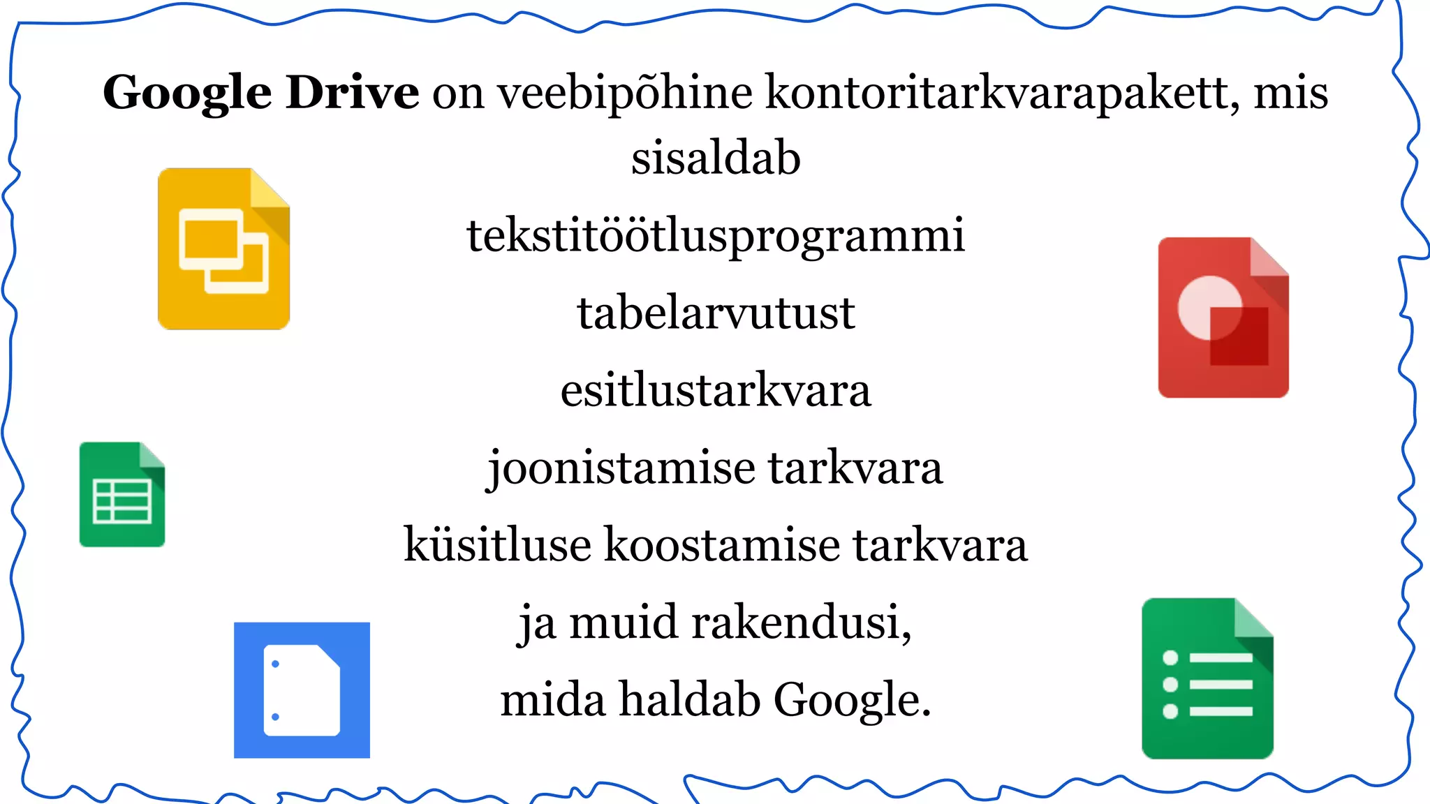 Google Drive onveebipõhine kontoritarkvarapakett, mis
