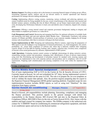 - He is currently based in Kuwait and is part of a team implementing SAP for Carrier's Middle East operations.