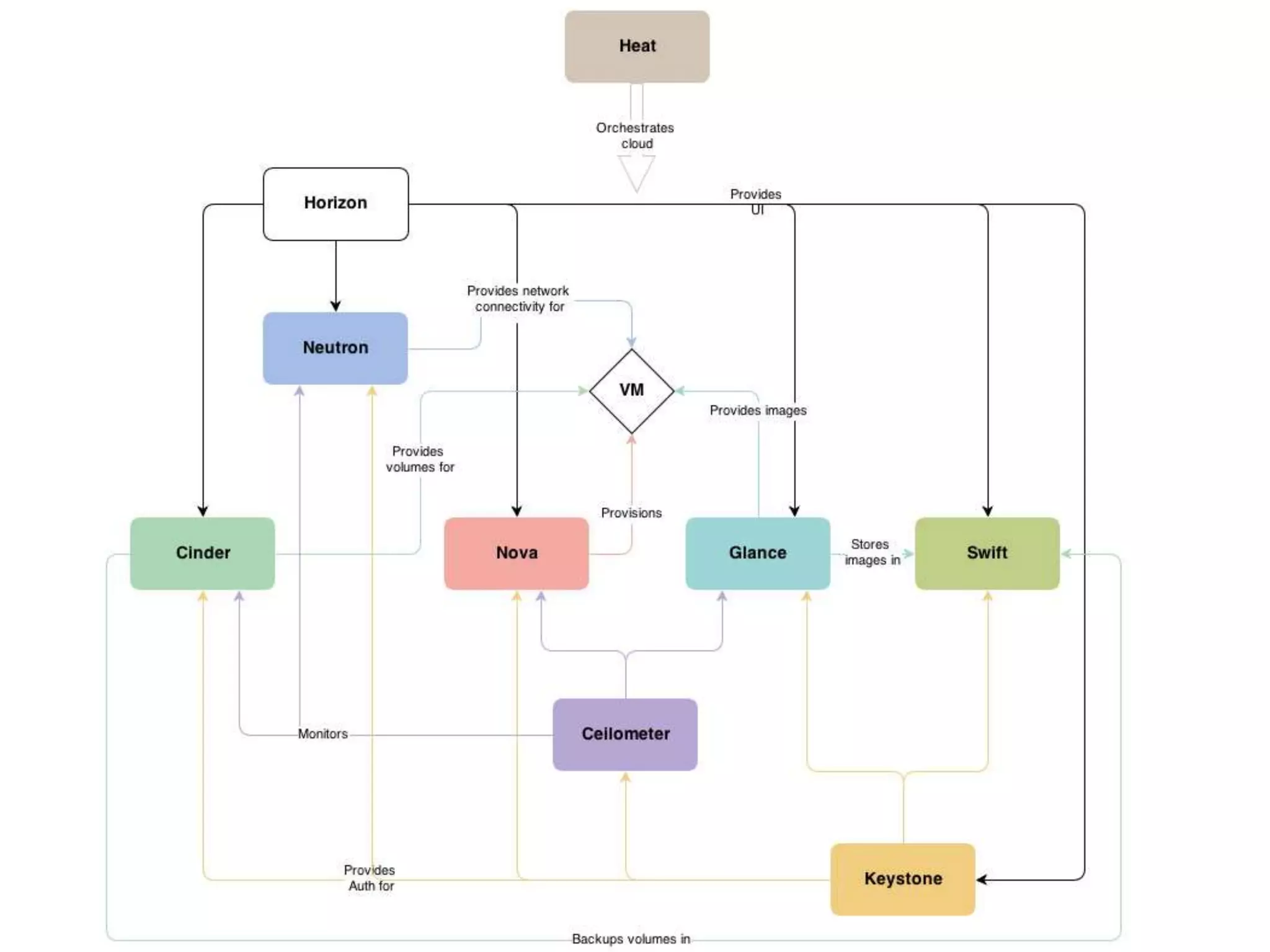 OpenStack là một hệ điều hành đám mây mã nguồn mở, miễn phí và hỗ trợ cả public cloud và private cloud, được phát triển bởi cộng đồng với sự khởi xướng từ NASA và Rackspace. Hệ thống này cung cấp nhiều dịch vụ như quản lý máy ảo, lưu trữ, mạng và bảo mật, cho phép các nhà cung cấp dịch vụ điện toán đám mây triển khai quy mô lớn. Mặc dù có nhiều ưu điểm như tiết kiệm chi phí và hiệu suất cao, OpenStack cũng gặp phải những nhược điểm về độ ổn định và hỗ trợ kỹ thuật.