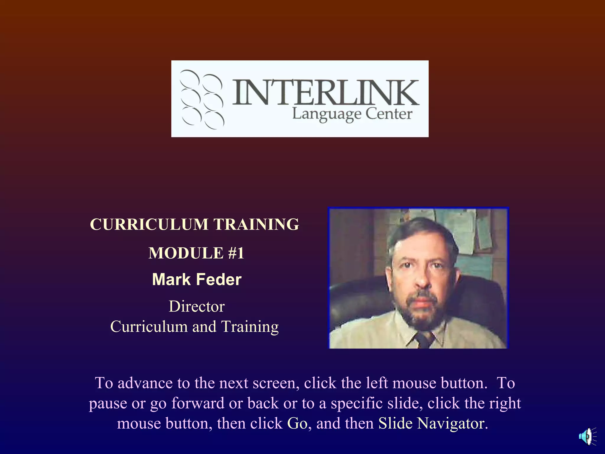 This document provides an overview of curriculum training module #1. It begins by defining what a curriculum is and then discusses some key differences between a conventional ESL curriculum and the INTERLINK curriculum being presented. Specifically, it notes that a conventional curriculum focuses on what content to teach rather than how students learn. In contrast, the INTERLINK curriculum is designed to be student-centered, experiential, pragmatic, interactive, holistic, needs-based, and heuristic to better facilitate learning. The overall goal is to allow teachers to focus on meeting students' needs rather than following a predetermined teaching agenda.