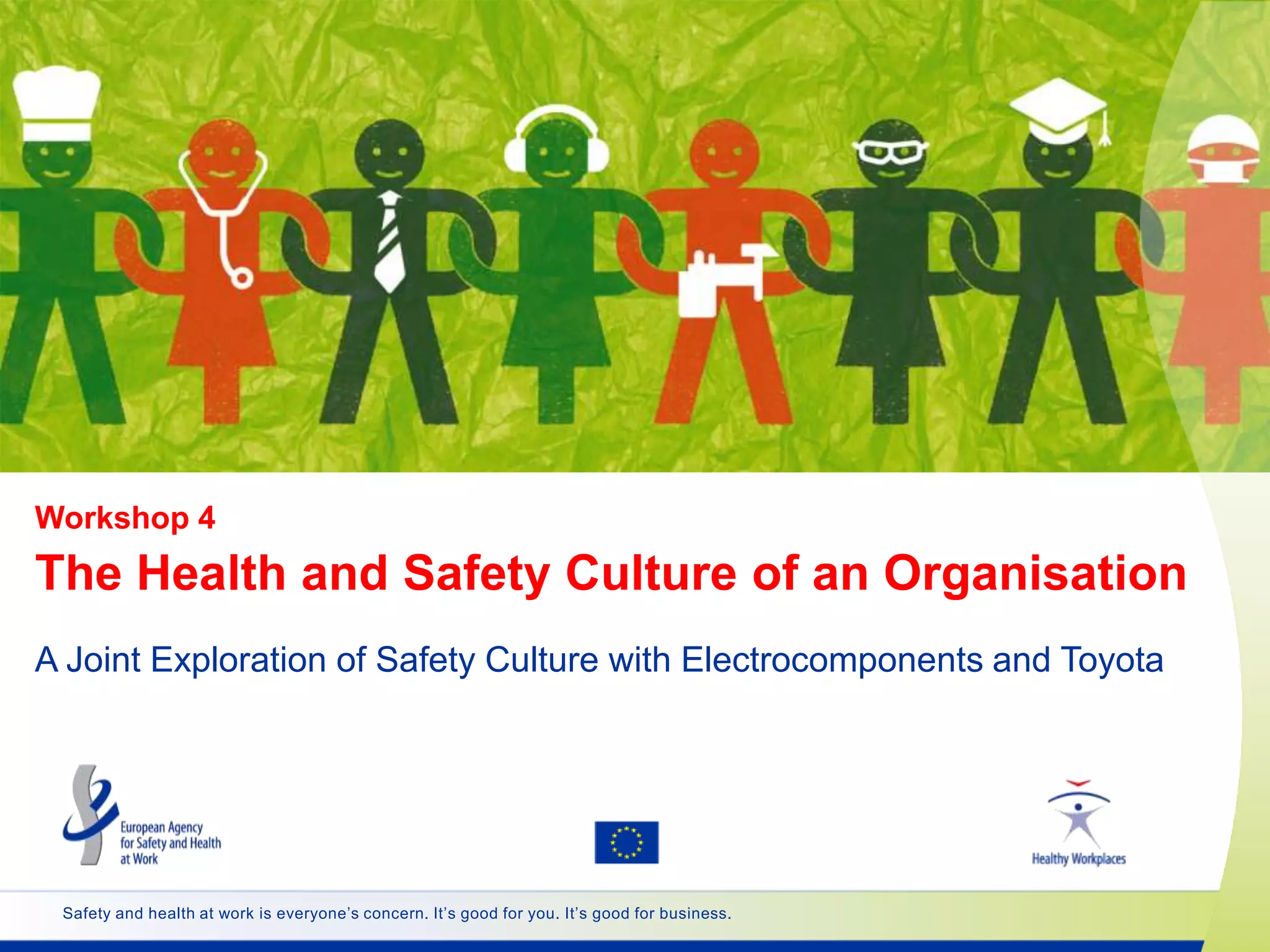 The document discusses the importance of safety and health culture within organizations, highlighting the roles of Electrocomponents and Toyota in fostering a positive environment. It emphasizes employee engagement as a key factor in driving business performance and reducing accidents, supported by case studies and metrics on the benefits of high engagement. Various strategies, including leadership involvement and continuous improvement practices, are explored as means to enhance safety culture.