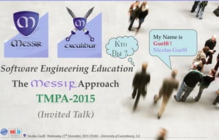 The document presents a keynote by Nicolas Guelfi at the tmpa-2015 conference discussing software engineering education, pragmatism, and empirical approaches. It highlights the importance of formal software engineering education, current trends in the industry, and the status of software engineering curricula. The presentation analyzes the relationship between software engineering and computer science, stressing the need for collaboration between the two fields.