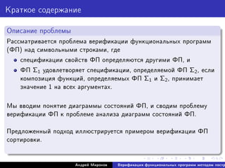 Àíäðåé Ìèðîíîâ Âåðèôèêàöèÿ ôóíêöèîíàëüíûõ ïðîãðàìì ìåòîäîì ïîñòð