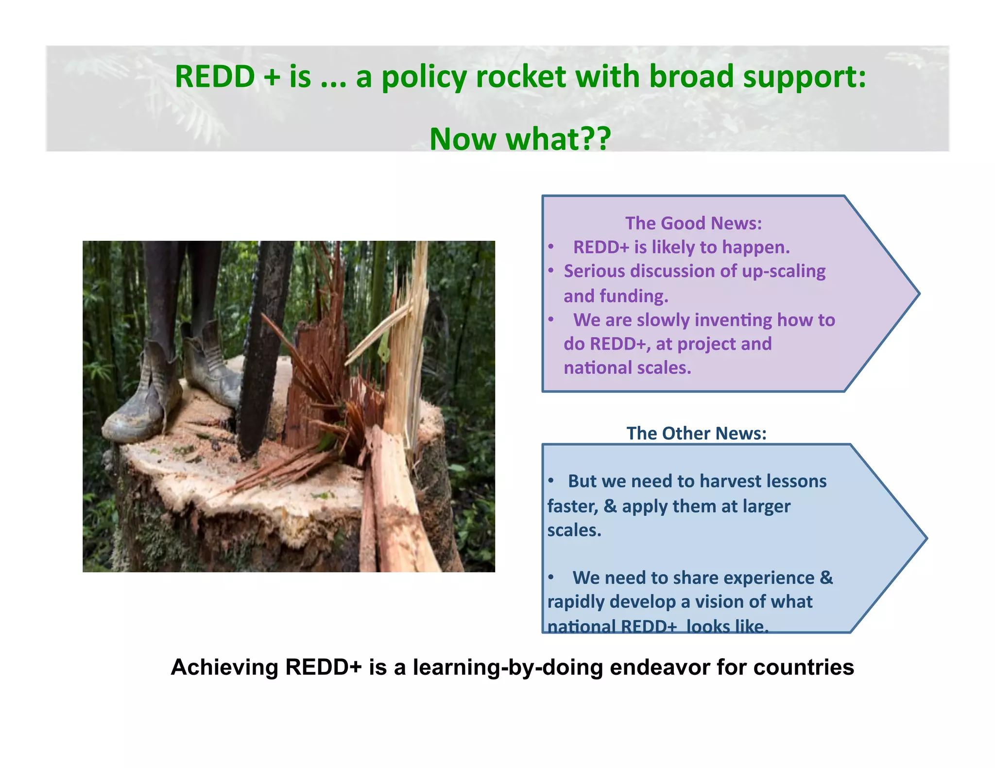 This document discusses pathways to success for REDD+ (Reduced Emissions from Deforestation and Forest Degradation) programs. It notes that REDD+ now has broad support but countries need to rapidly share lessons learned and develop a common vision for national REDD+ programs. Countries start REDD+ readiness activities from different points due to varying land use trends, deforestation drivers, and governance situations. Crucial early activities include transparent stakeholder consultations to develop an inclusive approach to REDD+ planning and implementation.