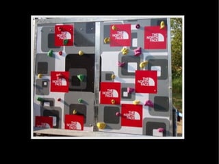 The document provides information on various North Face products for hiking including the Leonidas jacket and FootPower hiking boot. The Leonidas jacket features a waterproof and breathable HyVent material with fully taped seams. The FootPower boot generates power from footsteps to charge devices using a linked app. The document also discusses North Face branding, packaging, competitions, target markets, and distribution.