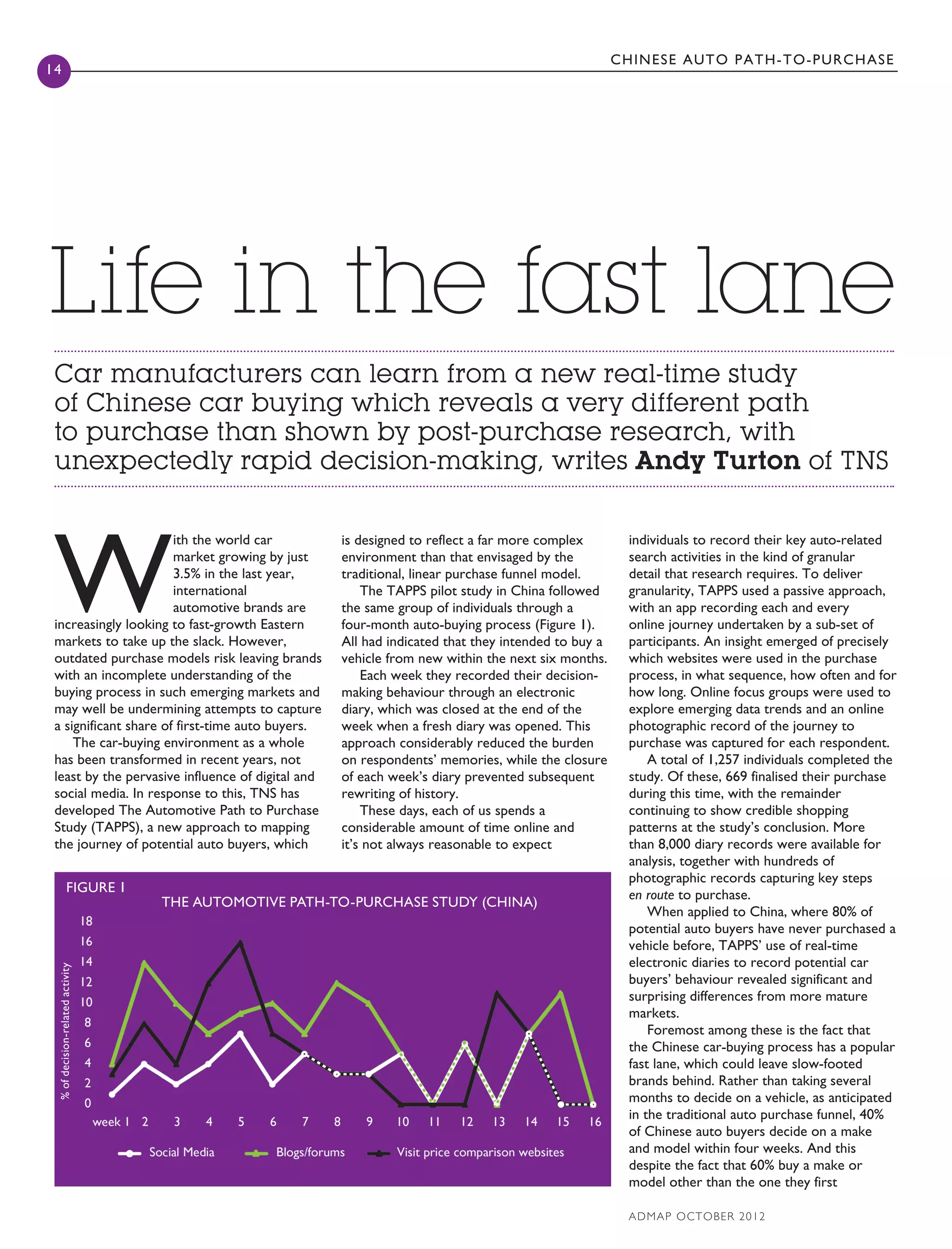 1) A study of Chinese car buyers using real-time electronic diaries found that the car buying process is much faster than traditionally thought, with 40% deciding on a make and model within 4 weeks.