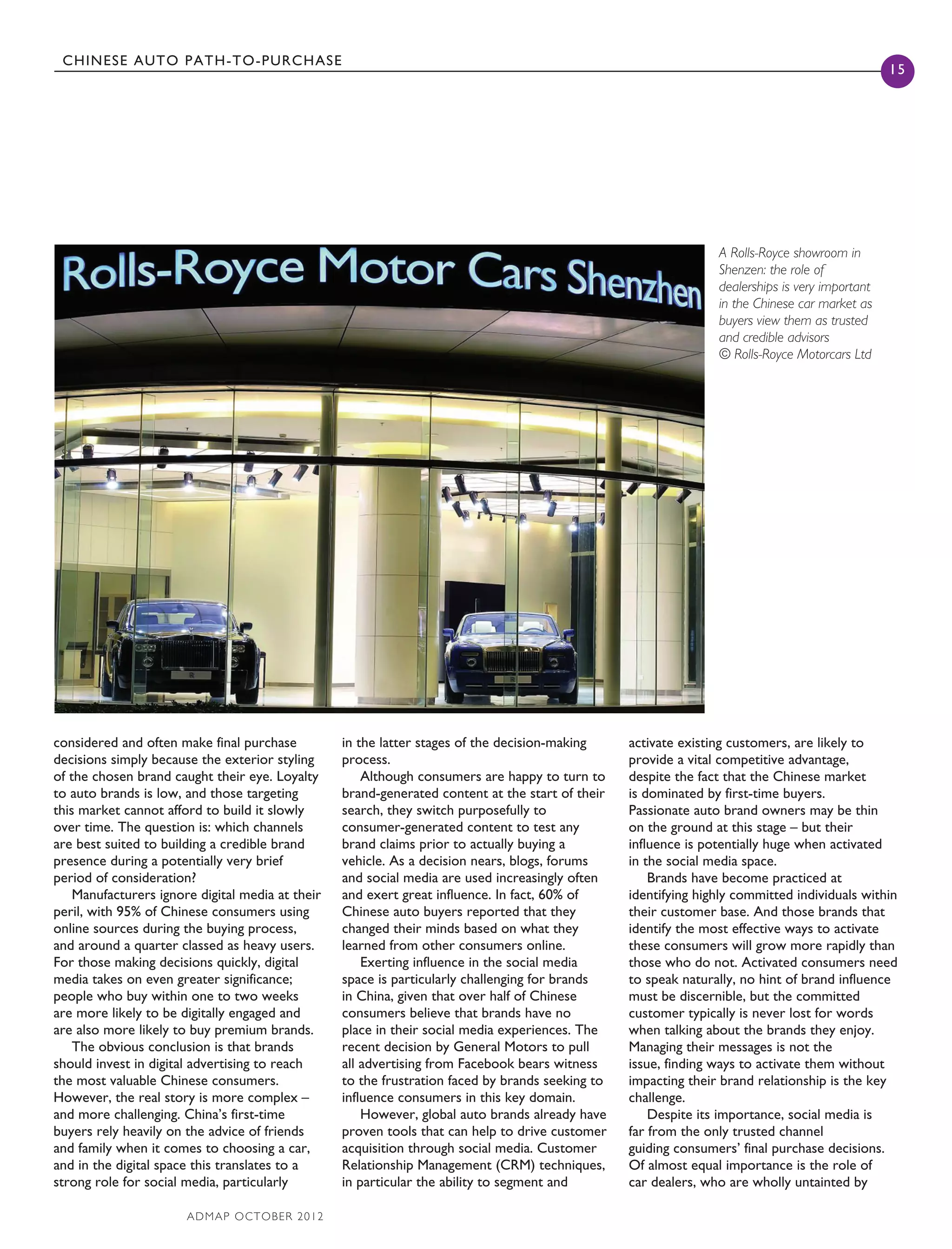 3) Car dealerships are seen as very trustworthy and important advisors in China, unlike in Western markets, and play a big role in influencing final purchase decisions.
