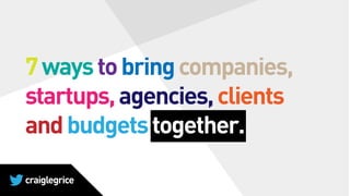 A personal career highlight, I spoke at 2013's The Next Web (TNW) Conference, Europe, in Amsterdam on 26 April - a true staple of the European technology calendar. My talk focused on "7 ways to bring companies, startups, agencies, clients and budgets together."