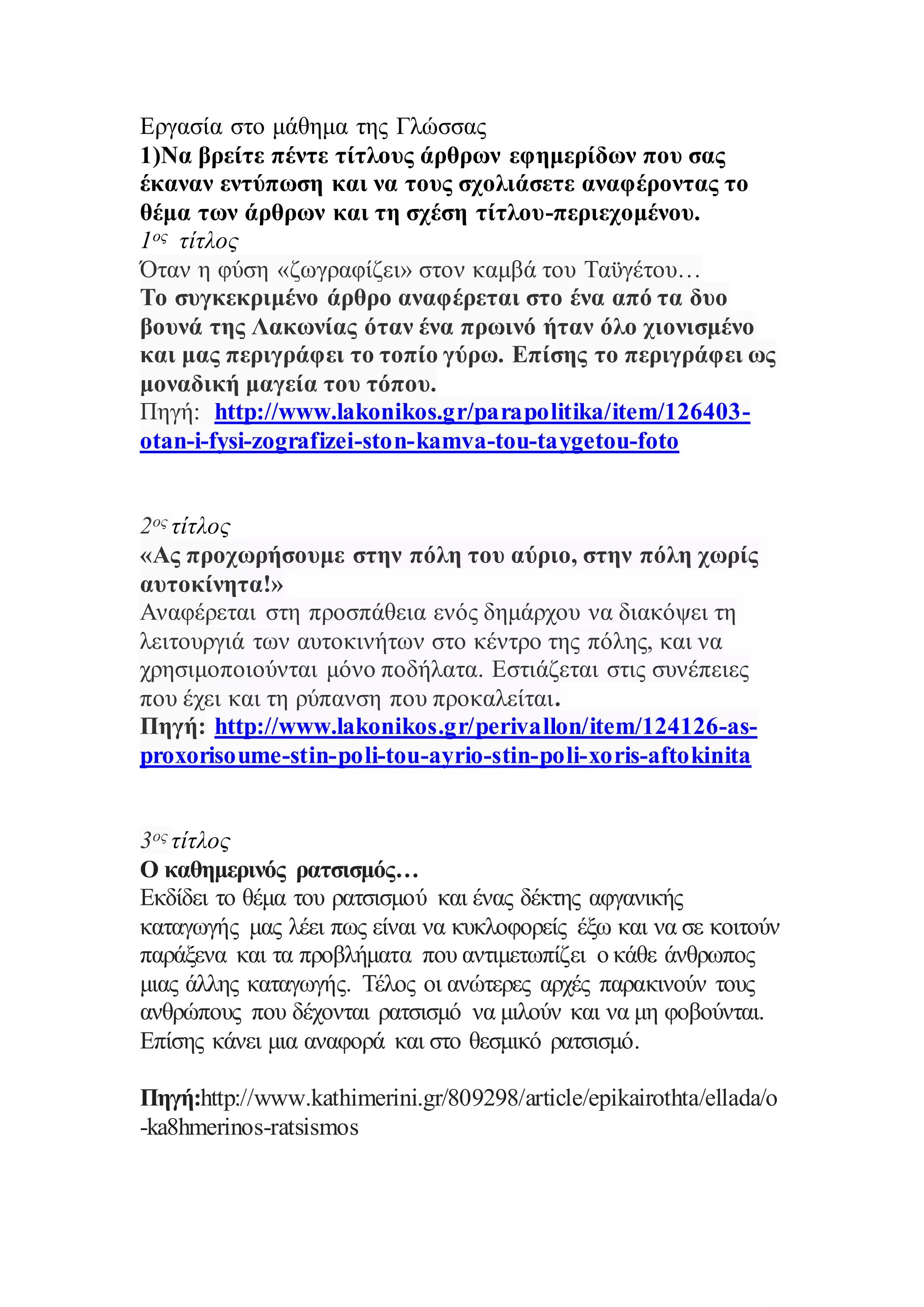 1)Να βρείτε πέντε τίτλους άρθρων εφημερίδων που σας