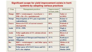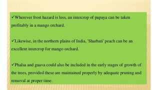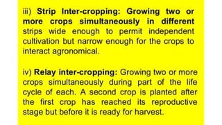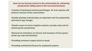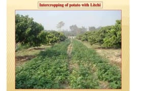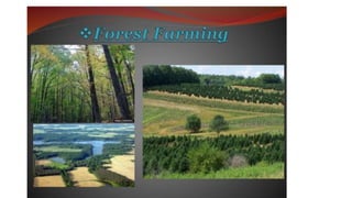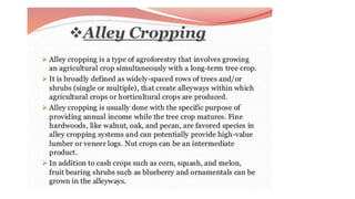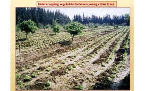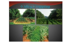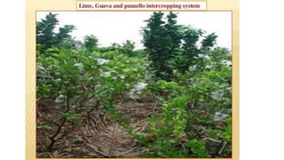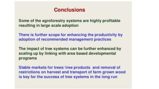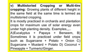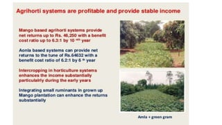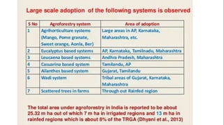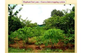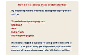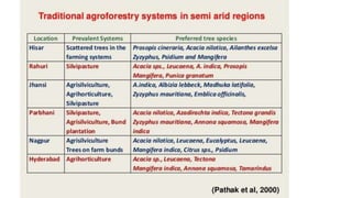 The document discusses developing a model cropping system by examining existing cropping systems in different regions of India, including Punjab, Himachal Pradesh and Jammu & Kashmir, the North East, Gangetic plain, Central India, Western India, humid tropics, and Telangana, Andhra Pradesh, and Karnataka. It covers agro-forestry practices and integrating forestry and agriculture farming. The goal is to gain an understanding of cropping systems currently used to inform the development of a new model.
