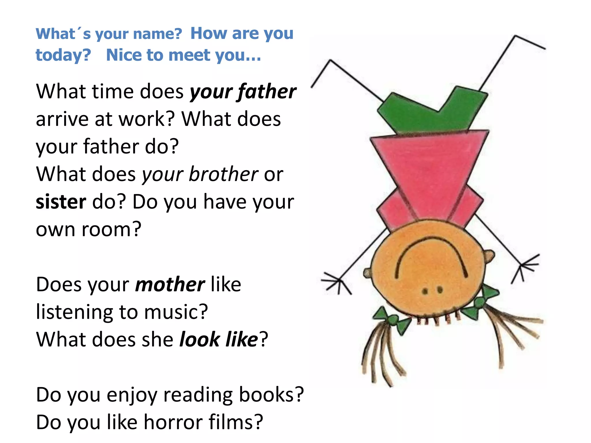 This document provides sample questions and answers for a Grade 3 English exam. It includes questions about personal information (name, address), family (jobs, pets), daily routine (school, after school), likes/dislikes (books, TV), and describing people, places, and the weather. Sample answers are provided in point form. The questions cover topics like personal details, daily activities, past experiences, and asking/giving directions.