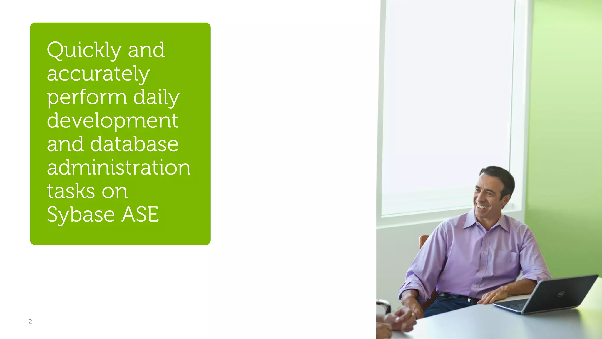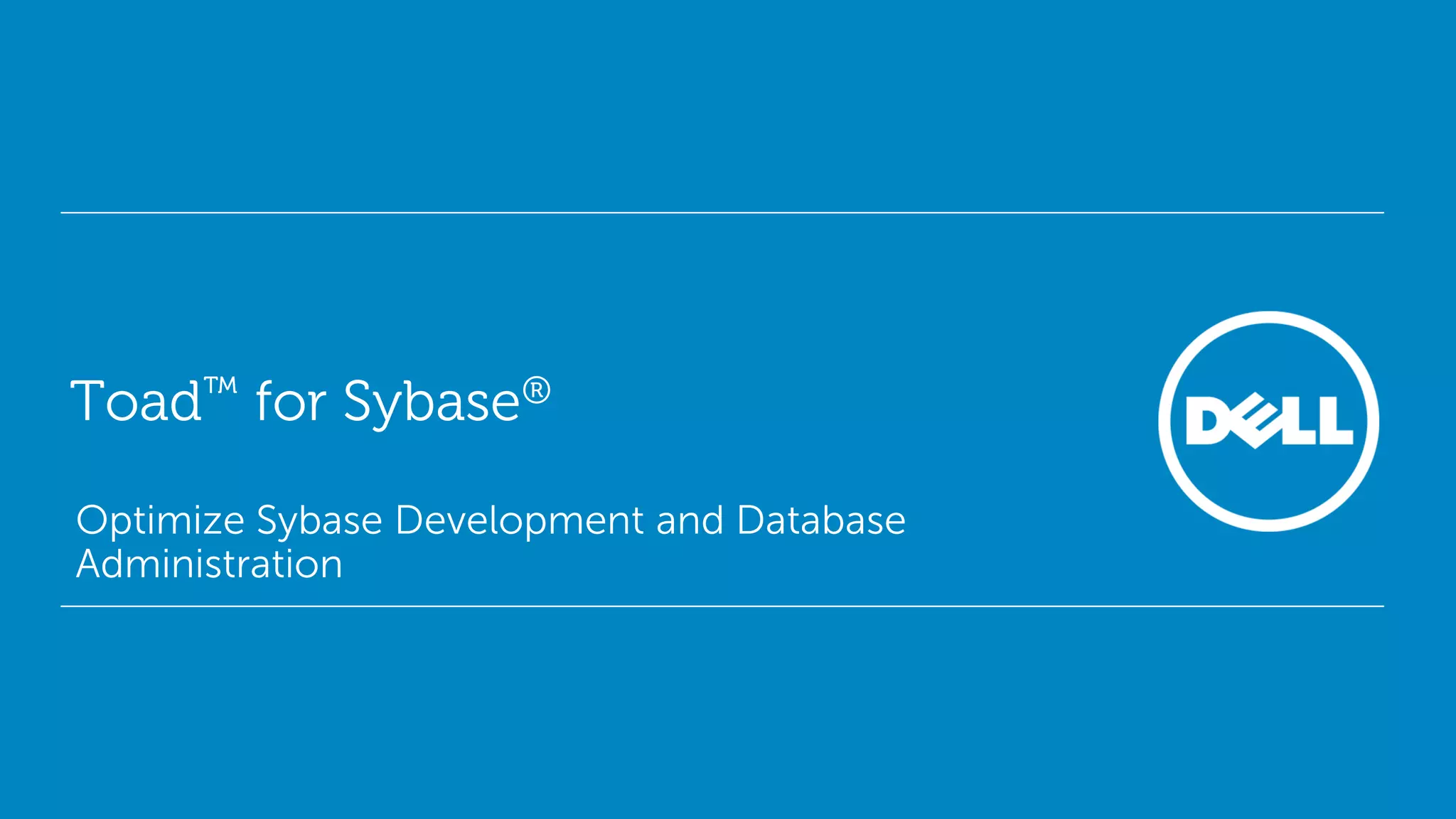 Toad for Sybase® is a leading tool for database development and administration that enhances productivity through task automation, code optimization, and user-friendly interfaces. With a strong user community and proven longevity, it offers features such as SQL performance tuning, object management, and collaboration tools to streamline workflows for developers and DBAs. Users report significant improvements in efficiency, with many expressing that Toad is essential for their daily tasks.