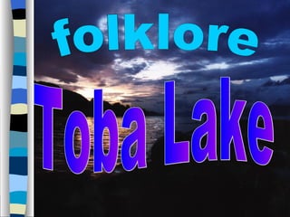 The document summarizes a folklore from the Toba Lake region in Indonesia. It tells the story of a man who caught a large golden fish that transformed into a beautiful princess. They married on the condition that he never reveal she was once a fish. Years later, in anger he broke his promise by calling his daughter "the daughter of a fish". The princess cried and warned their daughter of an impending disaster. An earthquake and heavy rains then flooded the area, forming Lake Toba. The princess turned back into a fish and the man became the island of Samosir in the middle of the lake.