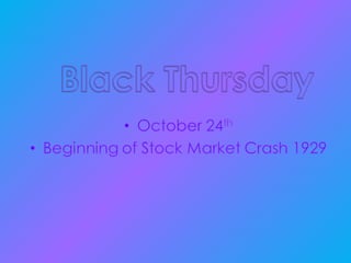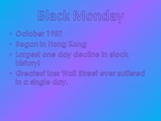 A slideshow presenting the stock crashes, and what reasons we may think have caused them.