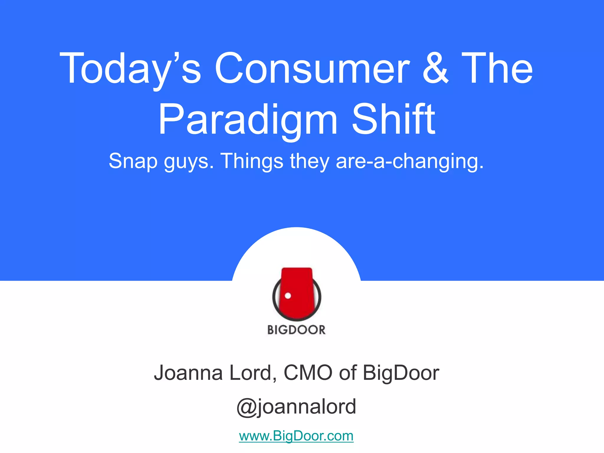 The document discusses the paradigm shift in marketing due to changes in consumer behavior and the marketing landscape. It outlines four key changes: 1) Consumer discovery, comparison, decision making, and evaluation is highly personal. 2) Loyalty has become more important than ever. 3) Consumers decide differently and are influenced by high volumes of information. 4) Marketers must now manage and amplify the consumer voice, which has become more powerful. The changes require marketers to evolve from marketing "to", "at", and "for" consumers to marketing "with" consumers.
