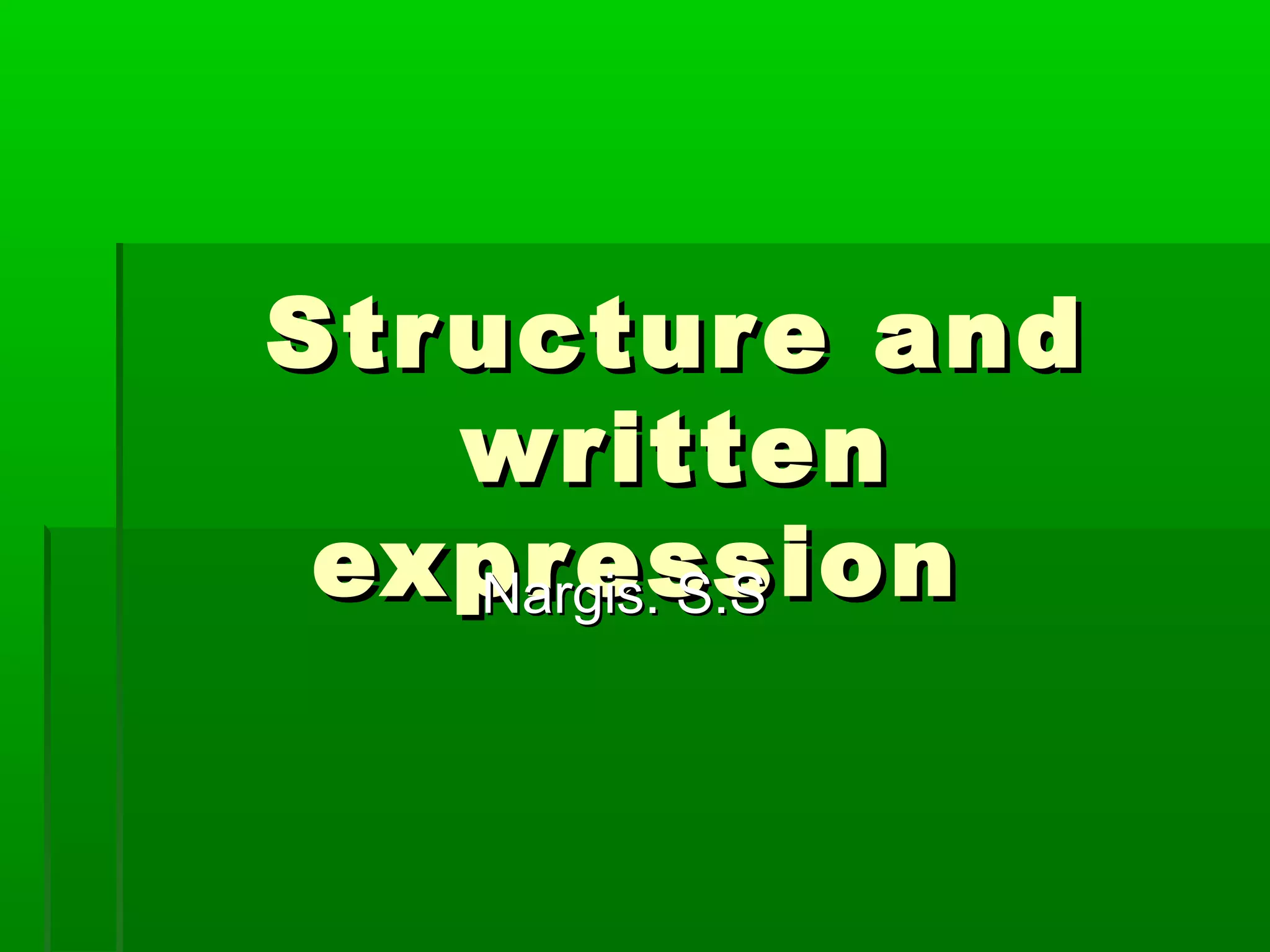 This document provides guidance on various aspects of written expression and reading comprehension. It discusses identifying the main topic and ideas of a passage, using context clues to determine word meanings, scanning for details, and differentiating between comparative and superlative forms of adjectives and adverbs. Examples are given of each concept to illustrate proper usage.