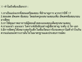 >> ทำไมถึงต้องเลือกเรา : 1.เราเป็นแห่งแรกที่สอนเตรียมสอบ