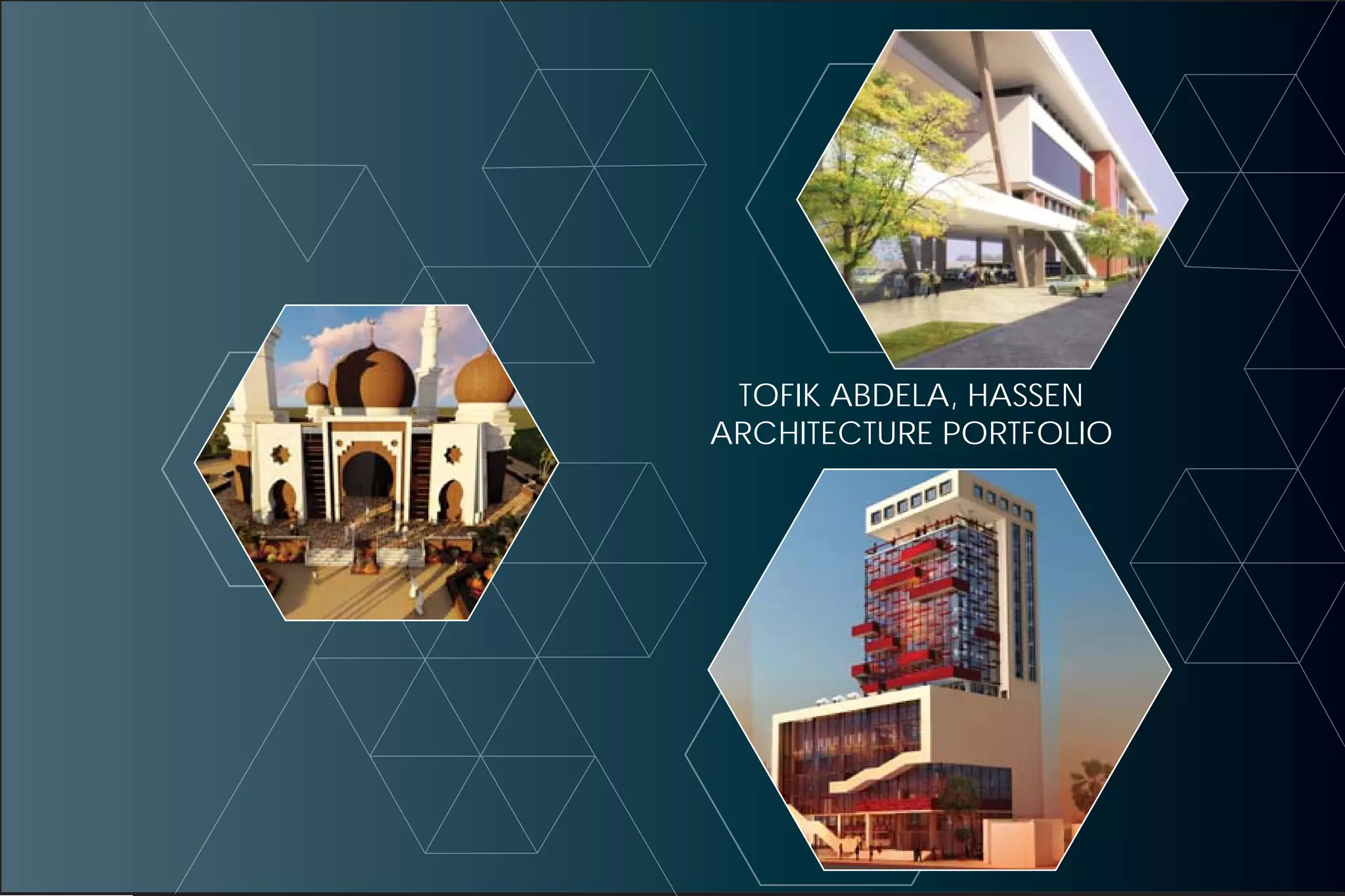This document is an architecture portfolio belonging to Tofik Abdela, Hassen. It lists several architectural projects he has worked on in Addis Ababa and Adama, Ethiopia, including a mixed-use high rise building, commercial mall, transit hub, mosque, and stadium projects. It also provides a brief profile of Tofik, noting that he received his bachelor's degree in architecture in 2016, has experience in interior design and teaching, and is interested in urban architecture and how buildings can impact cities.
