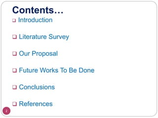 The document presents a proposal for developing a Bangla tokenizer for part-of-speech tagging and token classification to address challenges in natural language processing for the Bengali language. It discusses the importance of tokenization and the complexities of Bangla grammar, emphasizing the need for comprehensive technology and standards to facilitate effective language processing. Future work aims to improve token classification and stemming to enhance the accuracy and efficiency of Bengali text processing.